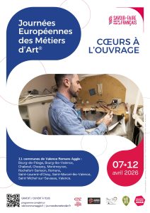 Du 7 au 12 avril 2026, les métiers d’art sont à l’honneur sur 11 communes du territoire : Bourg-de-Péage, Bourg-lès-Valence, Chabeuil, Charpey, Montmeyran, Rochefort-Samson, Romans, Saint-Laurent-d’Onay, Saint-Marcel-lès-Valence, Saint-Michel-sur-Savasse, Valence.